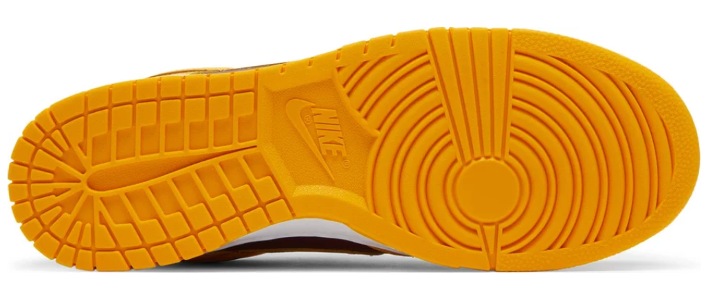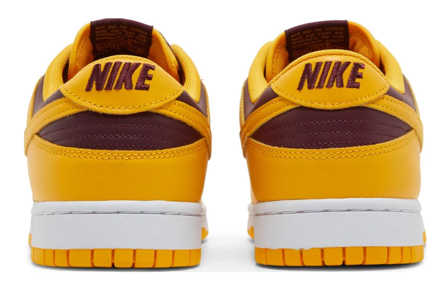 Nike Dunk Low in the “Arizona State ” colorway is currently one of the most popular summer shoes in recent years. Its low upper combined with the classic shape creates a perfect combination. These shoes consist of burgundy side panels and toebox and yellow leather elements. The white sole slims the shape of the shoe, and its lower part corresponds to the color of the upper.
